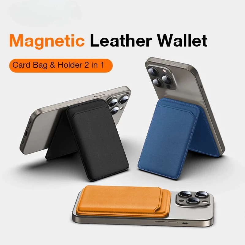 Wireless M2 Magnetic Phone Card Holder Magsafe Wallet Slim Premium Leather Card Bag Stand